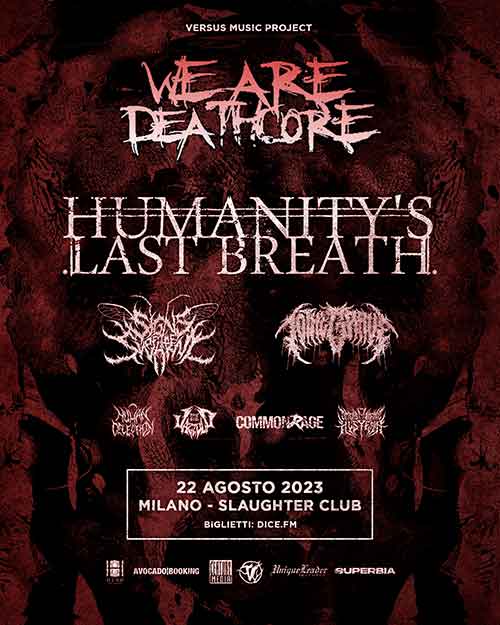 Versus Music Project presenta il We Are Deathcore, il festival che accompagna la scena estrema italiana dagli albori, cioè l’era MySpace fino alla gloria mainstream odierna. Il festival si terrà il 22 agosto a Paderno Dugnano (MI) presso lo Slaughter Club e sarà la sua prima edizione post-pandemia. Ai già confermati headliner Humanity’s Last Breath, Signs Of The Swarm e To The Grave, si aggiunge ora una selezione di artisti nazionali qui di seguito: