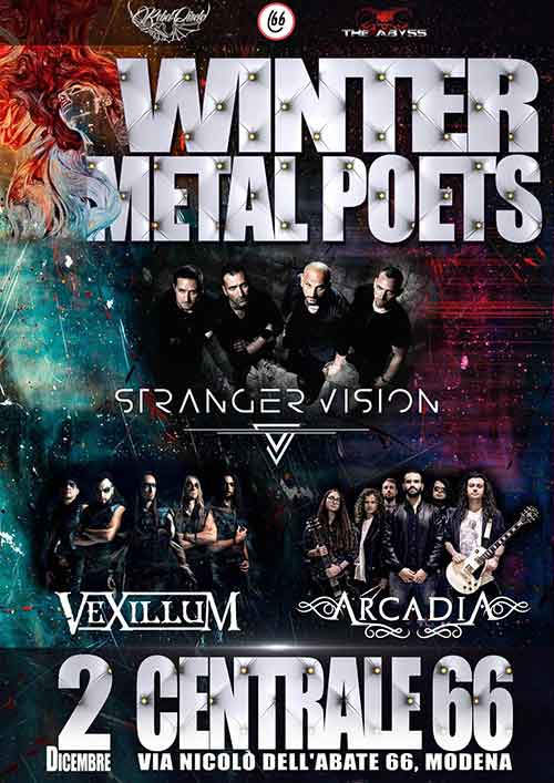 The Abyss Booking, Rebel Circle e Centrale 66 annunciano il “Winter Metal Poets” che si terrà il 2 dicembre al Centrale 66 di Modena. Nell’evento del primo sabato di dicembre si esibiranno Stranger Vision, Vexillum e Arcadia.
