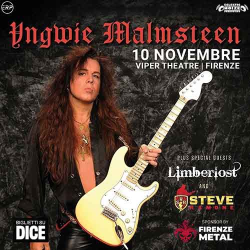 Yngwie Malmsteen si esibirà in Italia per quattro concerti a novembre. Il 10 Malmsteen sarà sul palco del Viper Theatre di Firenze e ad aprire per il funambolo ella chitarra sarà la musica di Limberlost e di Steve Ramone.